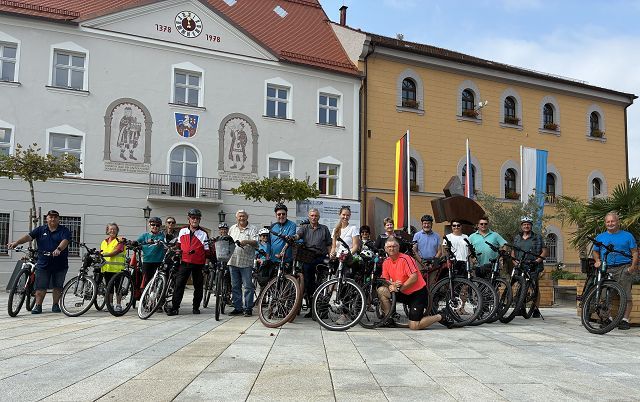 Zu einer 3-stündigen Informations-Radrundfahrt trafen sich die Freien Wähler am Sonntagvormittag am Rathausplatz in Osterhofen.