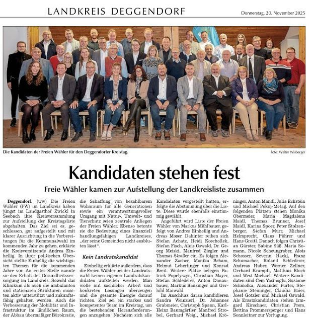 Auch der Ortsverband der Freien Wähler Osterhofen ist mit 6 Kandidaten auf der Kreistagsliste der Freien Wähler (Liste 2) vertreten und kämpft um Plätze im Kreistag.