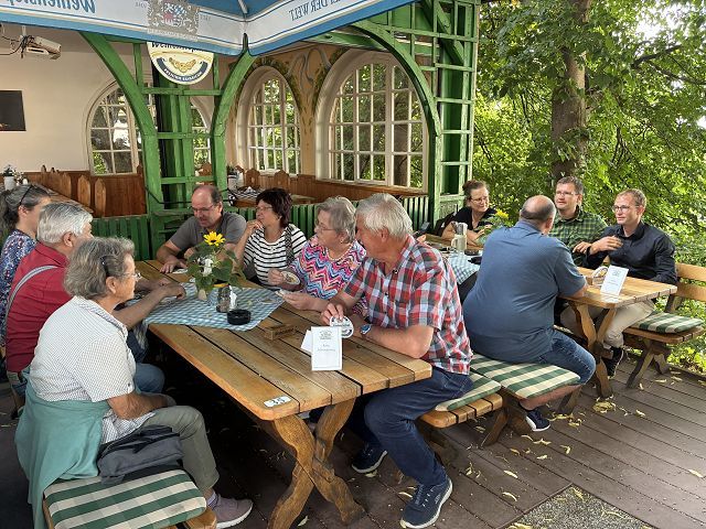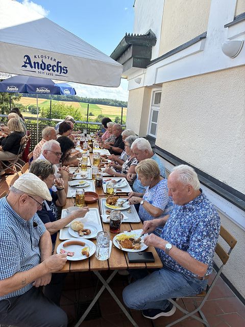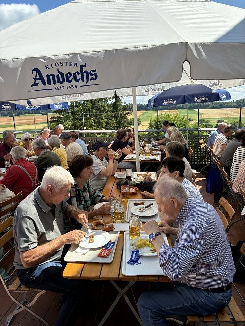 Im schattigen Biergarten stärkten sich die Teilnehmer mit regionalen Spezialitäten und genossen das frisch gezapfte Klosterbier. Der Aufenthalt bot zudem Gelegenheit für persönliche Gespräche, geselliges Miteinander und einen herrlichen Blick auf das umliegende Fünfseenland.