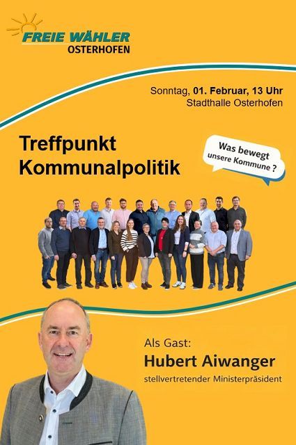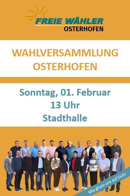 Herzliche Einladung zur Freie Wähler Wahlversammlung - Treffpunkt Kommunalpolitik am Sonntag 01.02.2026 ab 13:00 Uhr in der Stadthalle Osterhofen.