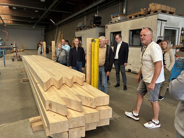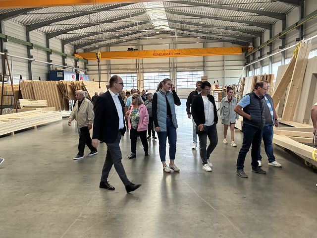 Beim Rundgang durch das weitläufige Werksgelände gab Johann Aigner, Abteilungsleiter der Holzhalle, den rund 30 Besuchern spannende Einblicke in die vielseitigen Tätigkeiten des international erfolgreichen Unternehmens.