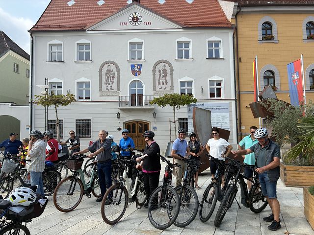 Zu einer 3-stündigen Informations-Radrundfahrt trafen sich die Freien Wähler am Sonntagvormittag am Rathausplatz in Osterhofen.