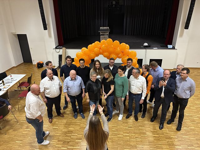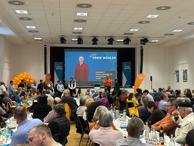 Wahlparty der Freien Wähler Osterhofen in der bis auf den letzten Sitzplatz besetzten Stadthalle in Osterhofen.
