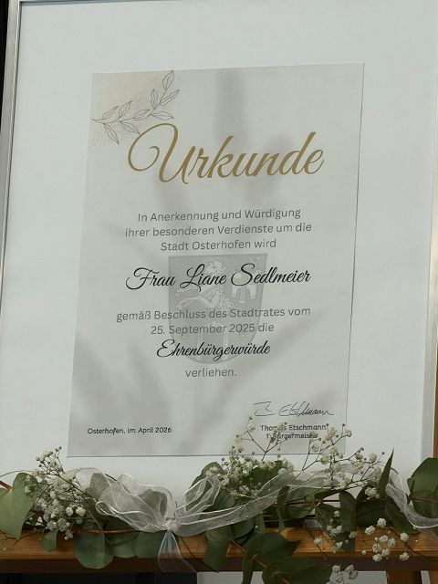 Freie Wähler -- Liane Sedlmeier Ehrenbürgerin der Stadt Osterhofen -- 17.04.2026