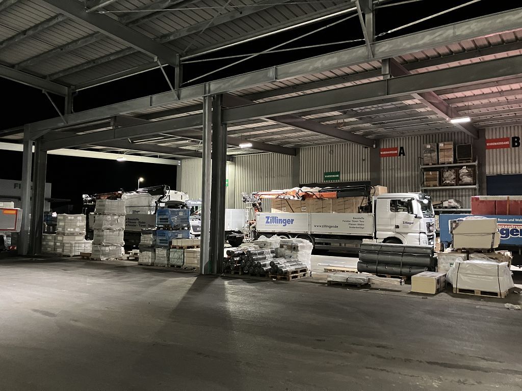 In Osterhofen wird auf einer Lagerfläche von 14.500m2 (4.500m2 Hallenfläche / 10.000m2 Freifläche), alles gelagert, was die Handwerksfirmen in Südostbayern verarbeiten und auch kurzfristig benötigen.