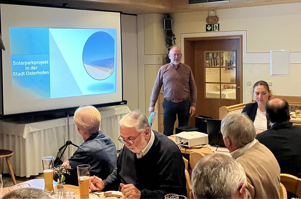 Referenz Anton Schweiger, Vorstand der Solea GmbH, informierte über das PV- und Wasserstoffprojekt im Gemeindebereich der Stadt Osterhofen, welches in den kommenden Monaten in die Umsetzungsphase gehen wird.