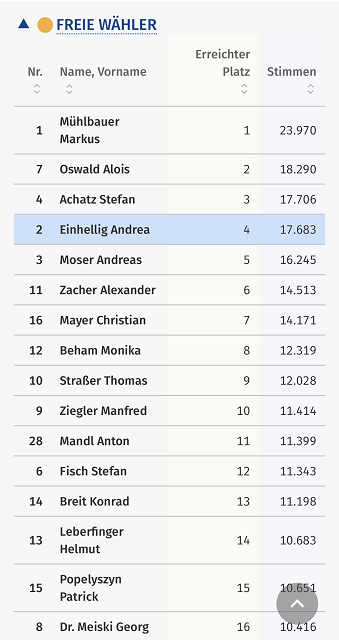 weitere top Plätze der Kandidaten der Freien Wähler Osterhofen