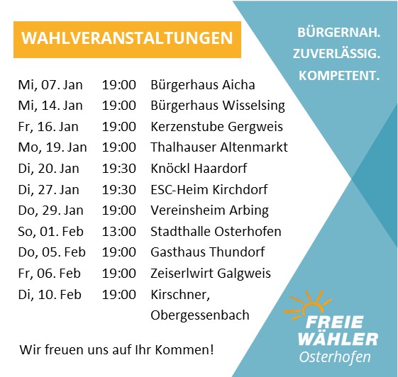 Weiterlesen … Freie Wähler -- Voranzeige Wahlveranstaltungen Stadtratswahl -- 08.03.2026